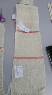I am extremely happy with the way my samples have turned out, and I had a lot of fun making and experimenting with all new ideas, structures, and materials. For example I have finally utilize the effects of high twist yarns to create dimension in my textiles. When weaving, it looks rather plain and simple but the magic happens when you wet finish them in very hot water and watch them "shape themselves." I enjoyed reading about this technique and trying out for the first leaves me happy, but also leaves a lot of room for improvement, and more experimentation. Scale is an important feature and it always very satisfying weaving quite a large batch of samples.